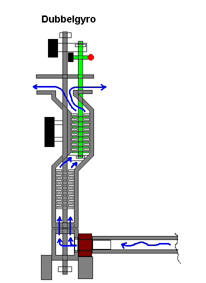 In the big tube of falling water can be a "piston" do the water falls evenly and not in drops.